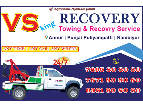 VS King Towing & Recovery Service best car towing and recovery services in tamilnadu at less cost and doing variety of services across all in tamilnadu.